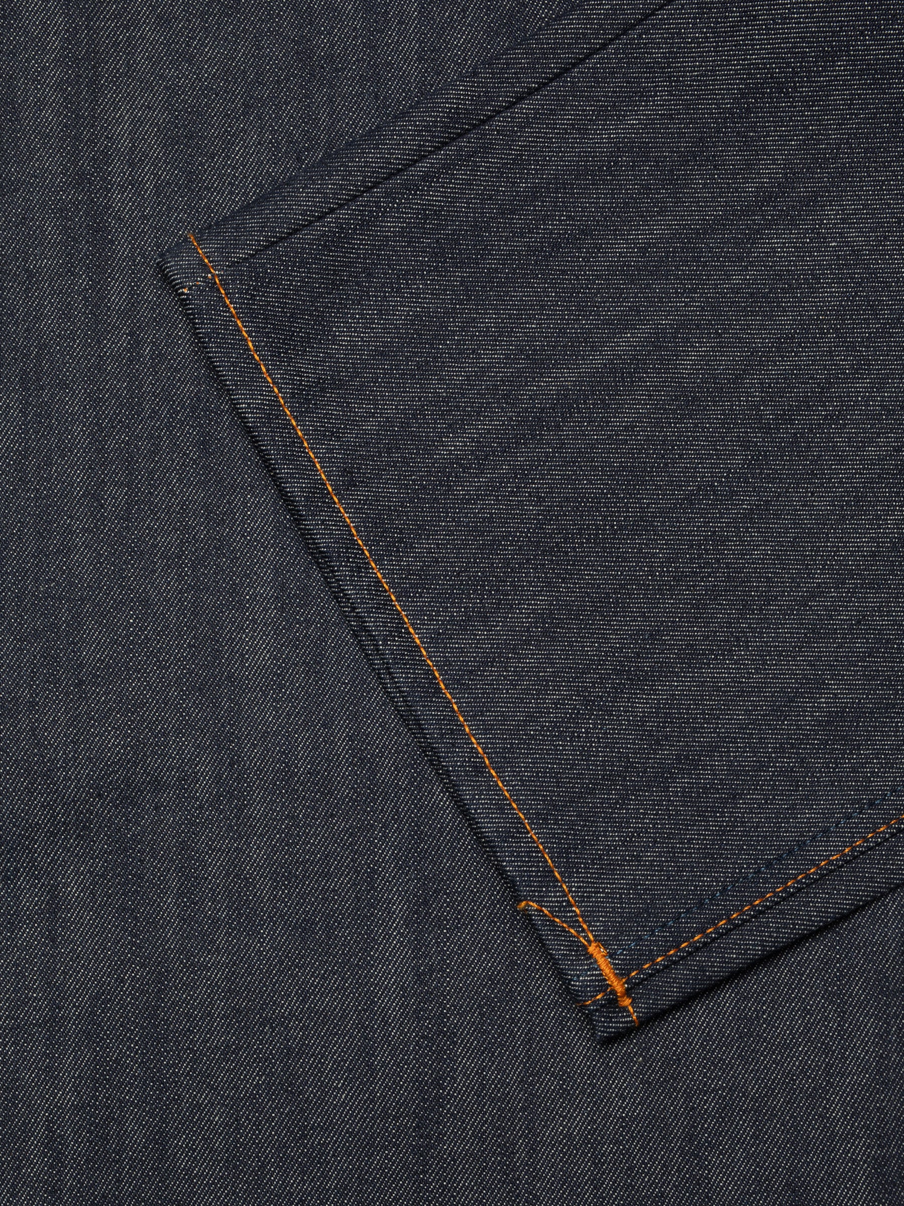 The art of reverse engineering denim is a hallmark of the artisanal Japanese denim industry. Dry Ace Selvage is a remarkable example of this craft, as well as a testament to the unique collaborative approach sometimes employed for premium Japanese denim. The rather extreme slub yarns are spun by Yamachu Mengyo Co. Ltd. in Osaka. The warp yarns undergo an impressive 20 dips in pure indigo dye, resulting in a deeply saturated surface with a notably substantial undyed core, courtesy of Kaihara Co. Ltd. in Hiroshima. Finally, the fabric is masterfully woven under low tension on vintage shuttle looms by Shinya Mills in Okayama. The guiding principle here is – do what you do best – and the final product beautifully reflects the craftsmanship at each stage of the denim's creation.